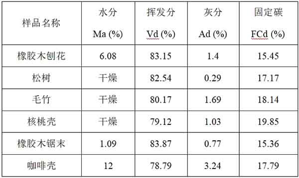 幾種生物質(zhì)原料工業(yè)分析數(shù)據(jù)見(jiàn)表1。